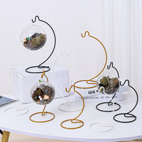 Colgador de plantas de acero con paisaje en miniatura, cesta colgante con jarrón de vidrio y pecera, estante de Metal decorativo para mesas